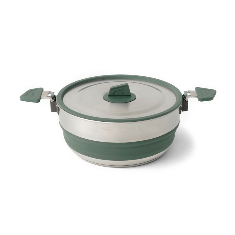 Sea To Summit Detour Stainless Steel Collapsible Pot 3L - Induktionstaugliche, zusammenklappbare Edelstahltöpfe mit einem dreischichtigen Boden für gleichmäßige Wärmeübertragung bilden das Herzstück einer großartigen Campingküche.