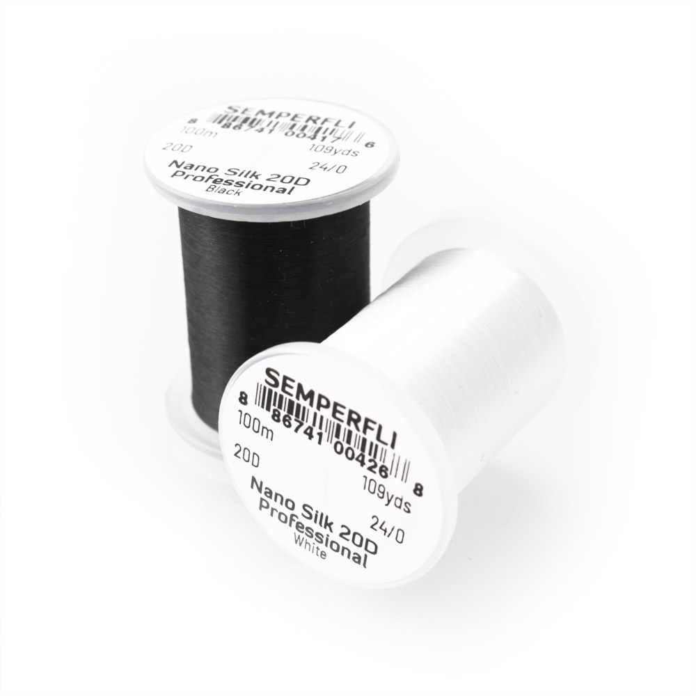 Semperfli Nano Silk Pro 24/0 20D ist die ideale Wahl für Fliegenbinder, die an feinsten Mustern arbeiten. Mit einem Durchmesser, der dünn genug für Haken der Größe #18 oder kleiner ist, bietet diese Bindeseide eine erstaunliche Bruchstärke von 0,75 kg. Sie lässt sich flach auf dem Haken auftragen und kann leicht geteilt werden, um Dubbingschlaufen zu erstellen.