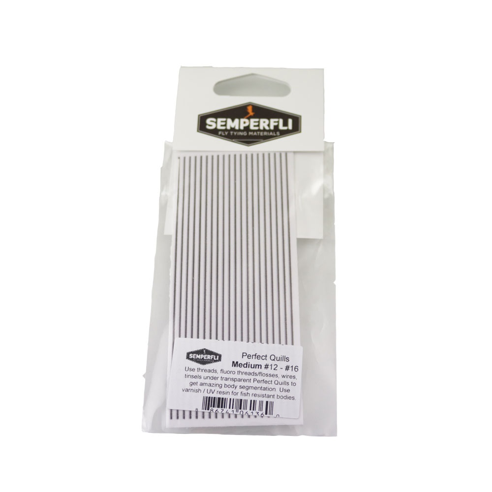 Semperfli Perfect Quills Synthetic ist die perfekte Wahl für Fliegenbinder, die realistisch segmentierte Körper bei Trockenfliegen und Nymphen schaffen möchten. Diese synthetischen Quills sind eine haltbarere und längere Alternative zu den klassischen Pfauenquills und haben eine klebende Rückseite, die das Fixieren und Umwickeln des Fliegenkörpers erleichtert. Die subtile Farbverjüngung bewirkt, dass das dunklere Segment dicker wird, ähnlich wie bei natürlichen Pfauenquills. Semperfli Perfect Quills gibt es in drei verschiedenen Größen, um eine Vielzahl von Fliegengrößen abzudecken: Small für Größe #22-#16, Medium für Größe #16-#12 und Large für Größe #12-#8.
