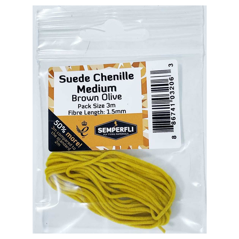Suede Chenille 1,5mm Medium ist ideal für abgesetzte Körper bei Würmern und Nymphen. Vielseitig einsetzbar für verschiedene Fliegenbindetechniken.