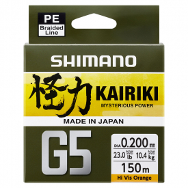 Shimano Line Kairiki G5 150m Orange ist eine 4-strängige, sinkende Geflechtschnur. Eine Schnur, die Ihnen in Situationen mit leichten Rigs, Crankbaits und Unterwasserködern neue Vorteile bringt!