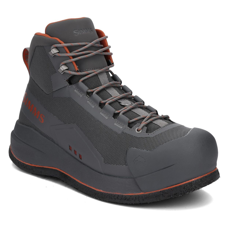 Die Simms Flyweight Boot Felt ist die perfekte Wahl für Angler, die Wert auf Komfort, Stabilität und Langlebigkeit legen. Das leichte Obermaterial aus TPU-basiertem synthetischem Gewebe ist robust und abriebfest, während die geformte Gummizehenkappe und Abriebschutz-Panels für zusätzlichen Schutz sorgen. Eine dual-dichte EVA-Zwischensohle bietet außergewöhnliche Dämpfung und Stabilität. Die Vibram® Idrogrip Sohle mit Traction Lug Profil garantiert optimalen Halt auf rutschigen Untergründen, und integrierte Drainagelöcher verhindern, dass sich Wasser in den Schuhen sammelt. Die Außensohle ist kompatibel mit Simms Hardbite- und Alumibite Star Cleats sowie Hardbite Studs für zusätzlichen Halt.