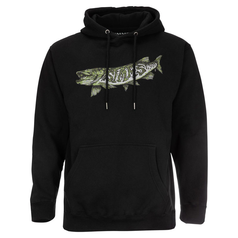 Simms Keeler Musky Hoody Schwarzer, sehr schöner und bequemer Hoody mit Keeler Musky Print.