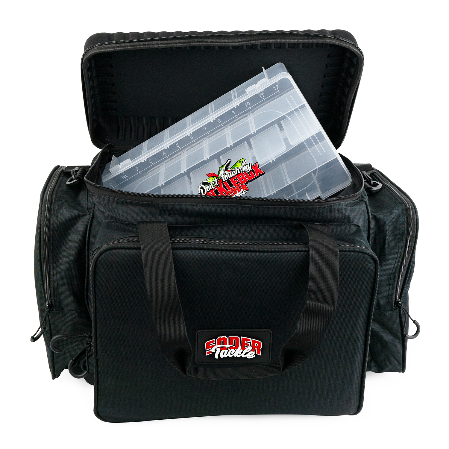 Detaillierte Produktbeschreibung: Diese Holdall-Tasche bietet ein großzügiges Hauptfach mit drei großen Köderboxen (3730) und Platz für insgesamt vier Boxen. Das vordere Seitenfach ist ebenfalls im Format 3730 und ermöglicht eine umfassende Köderaufbewahrung. An den Seitentaschen finden alle gängigen Angelausrüstungen wie Waagen, Zangen und Vorfachmaterial ihren Platz. Dank des festen Deckels kann die Tasche als kleiner Tisch zum Köderwechsel oder Pausen genutzt werden. Mit Tragegriff und Schulterriemen lässt sich die Tasche mühelos transportieren – ideal für Hechtangler.