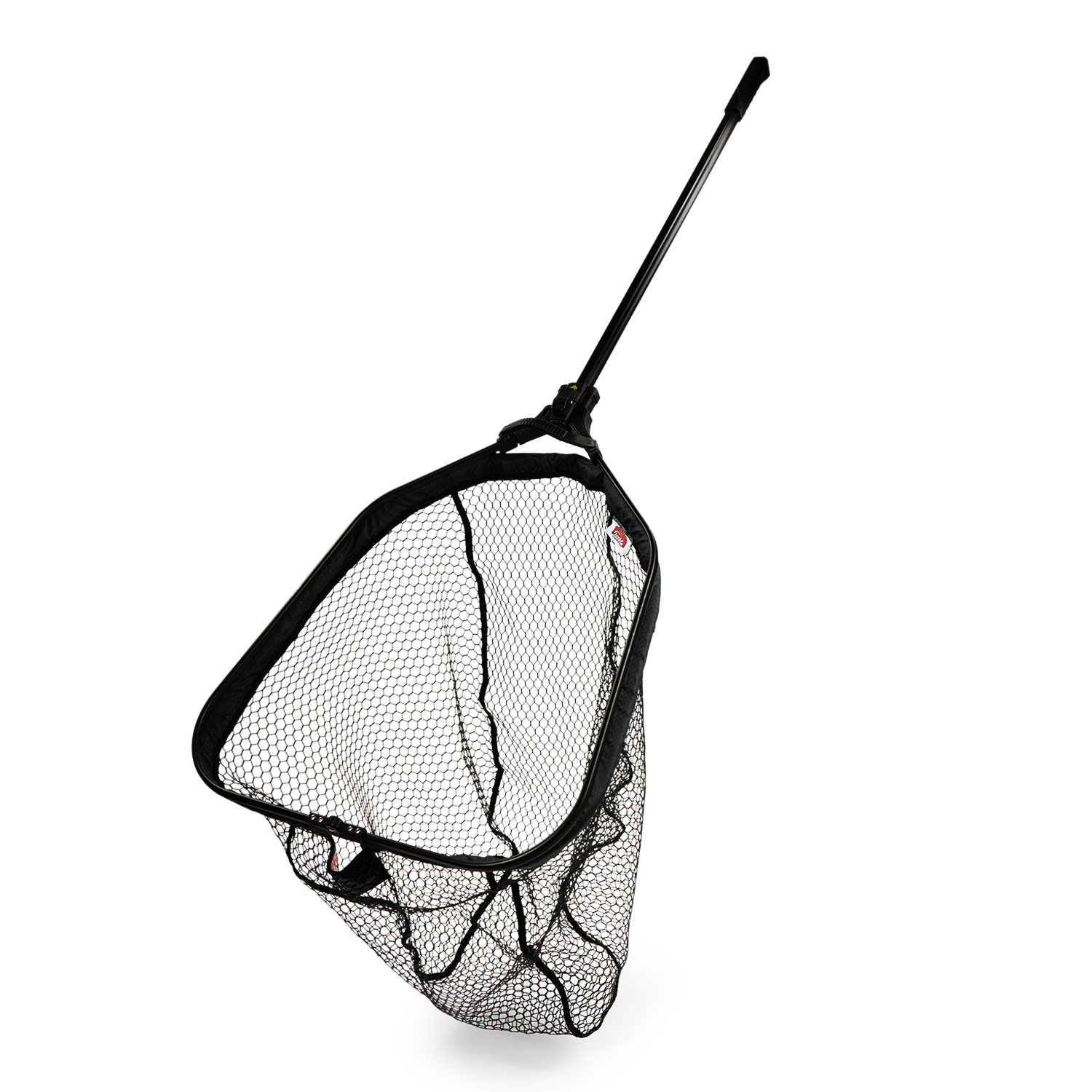Dieser Kescher kombiniert Stabilität und schonende Handhabung dank seines gummierten Netzes und der soliden Konstruktion. Mit gummierten Griffen am Stiel und am Ende der Kescherstange wird das Greifen erleichtert, und zwei praktische Klappmechanismen ermöglichen einfaches Verstauen.