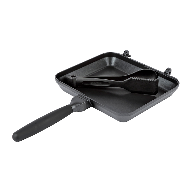 Der T-Lock-Mechanismus hält den Griff beim Kochen zuverlässig fest, bleibt dabei aber flach und unauffällig. Die fluorpolymere Antihaft-Beschichtung erleichtert Braten und Reinigen – praktisch, wenn wenig Wasser zur Verfügung steht. Die mitgelieferte Multi-Zange lässt sich am Griff parken und bei Bedarf in zwei eigenständige Kochwerkzeuge trennen, etwa zum Wenden und Servieren. Ideal für kurze Sessions, längere Ansitze oder Camping-Trips.