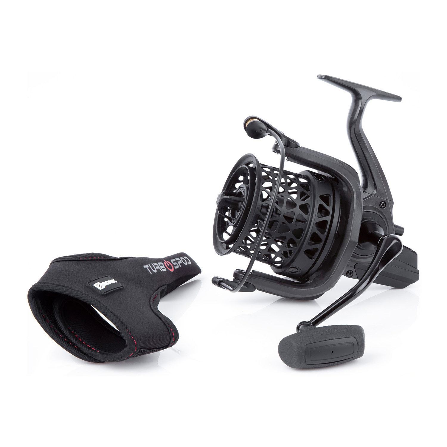 Die Turbospod Carbon 14000 ist eine speziell fürs Spodden entwickelte Weitwurfrolle, die hohe Geschwindigkeit mit geringem Gewicht kombiniert. Dank Carbon-Gehäuse und Rotor, stark ausgefräster Spule sowie hart eloxierter Aluminium-Hauptachse und Wormshaft-Getriebe spart sie Gewicht, ohne an Stabilität einzubüßen.