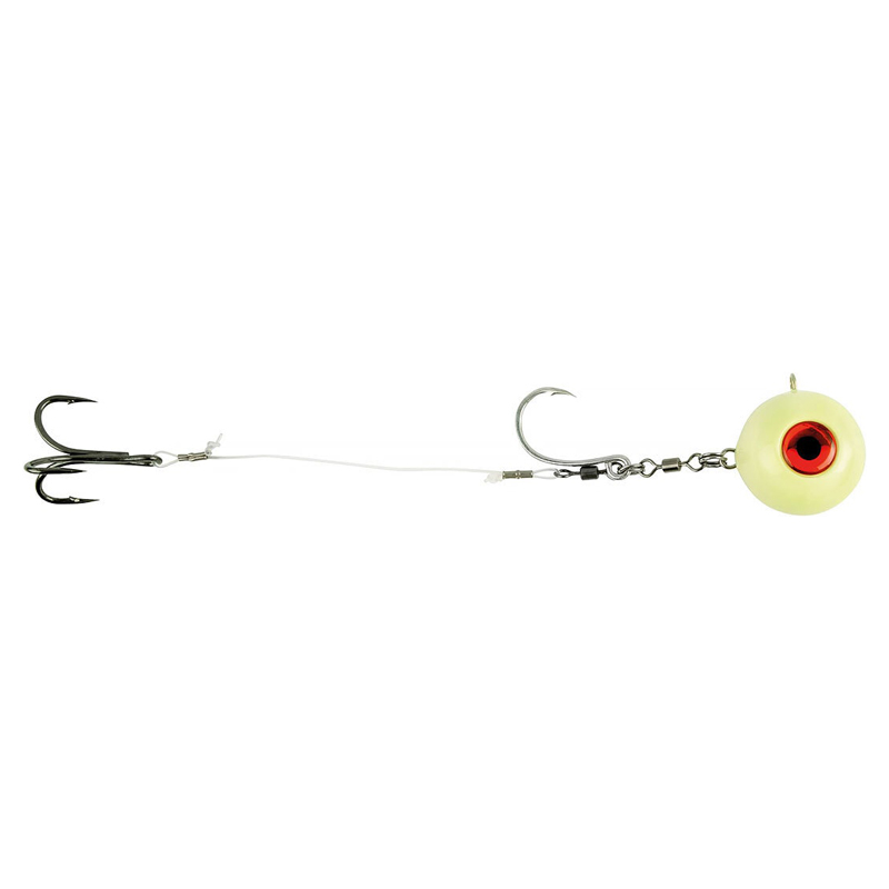 Eine intelligente und gut designte Montage für das Angeln mit Köderfisch auf Heilbutt, Dorsch und andere Fische, gefertigt aus robusten Komponenten. Die Anordnung der Haken und der Kugel ermöglicht es, den Köderfisch so zu montieren, dass er verlockend rotiert und auch an trägen Tagen große Raubfische zum Biss verleitet.