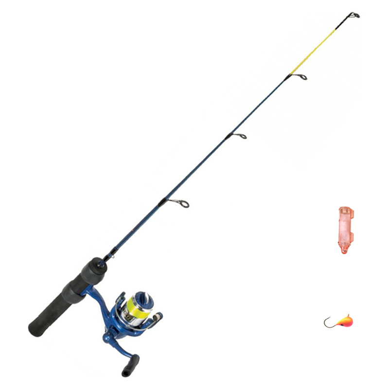 Squall Haspel 24L Combo Winter-Angelrute. Enthält eine 63 cm lange Rute mit einer Spinnrolle, die für das Eisfischen nach Forelle und Barsch geeignet ist. Kann für leichtere Eisangeln nach diesen zuvor genannten Arten verwendet werden. Die Rolle ist mit 0,175-mm-Nylonschnur bespult.