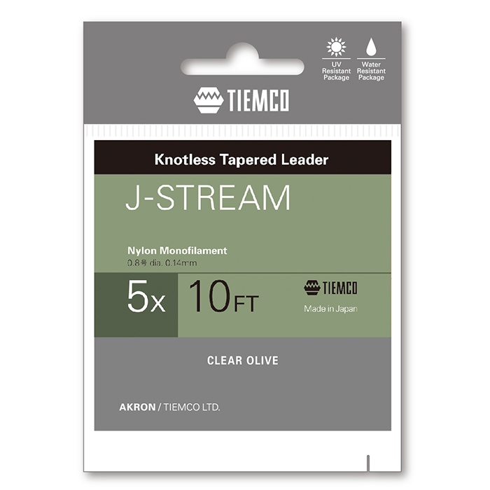 Der Tiemco J-Stream Tapered Leader besteht aus einem etwas steiferen Material für bessere Wurfkontrolle und Haltbarkeit. Der dünnere Butt-Teil sorgt für leichtere und natürlichere Drift in fließendem Wasser. Der 10 Fuß lange, olivgrüne J-Stream-Vorfach minimiert die Sichtbarkeit und erschreckt die Fische weniger – probieren Sie ihn selbst aus!