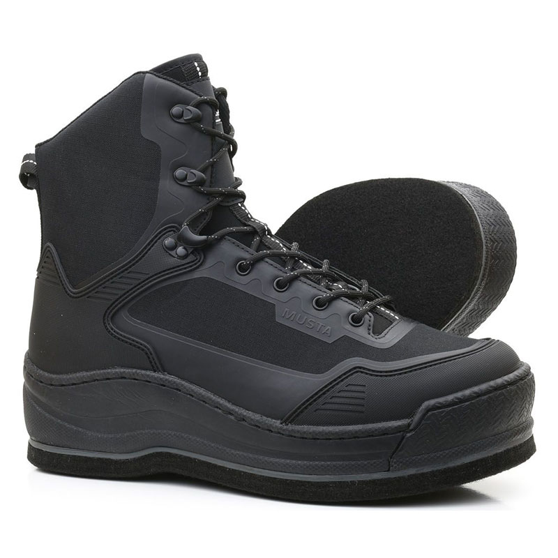 Musta Michelin ist ein moderner und leichter Watschuh mit TPU-verstärktem Ballistic-Polyester-Obermaterial und klassischer Filzsohle für optimalen Halt.