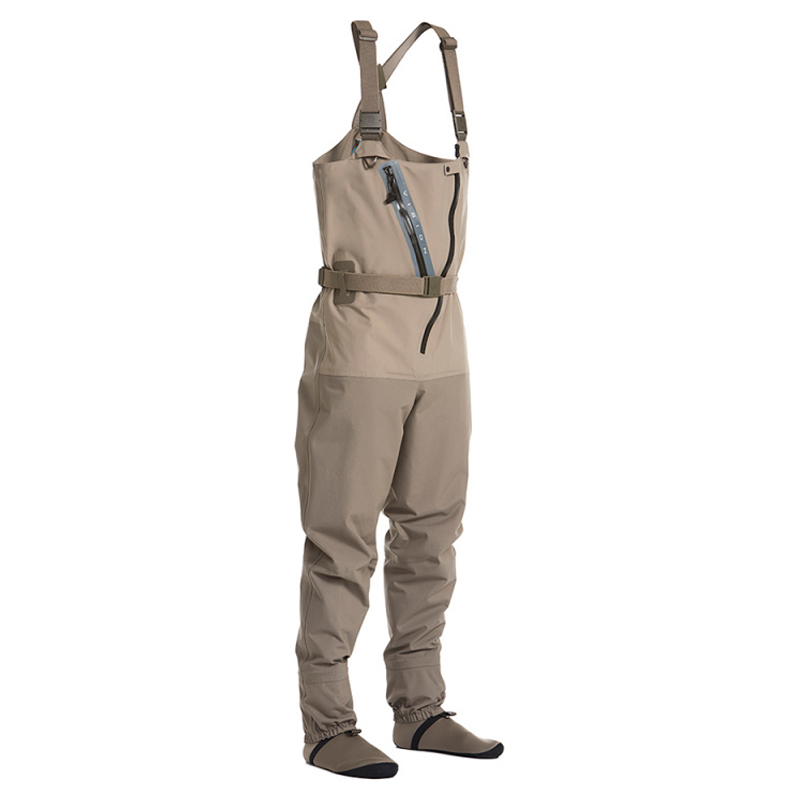 Wie der Name schon sagt, hat dieses Modell den durchgehenden Reißverschluss vorne. Er erleichtert nicht nur den Ein- und Ausstieg, sondern hilft auch, die Wathose bei extremen Wanderungen zu belüften. Und wenn die Natur ruft, ist das ein praktisches Feature. Der Hauptreißverschluss ist in einem leichten Winkel positioniert, um Ihnen mehr Unterstützung durch die Hosenträger beim Öffnen und Schließen zu geben. Auf diese Weise konnten wir auch mehr Platz für die wasserdichte Tasche auf der anderen Seite schaffen. Auch dieser Taschenreißverschluss ist in einem Winkel platziert und so haben Sie leichteren Zugang zu den Innenorganisatoren dieser Tasche.