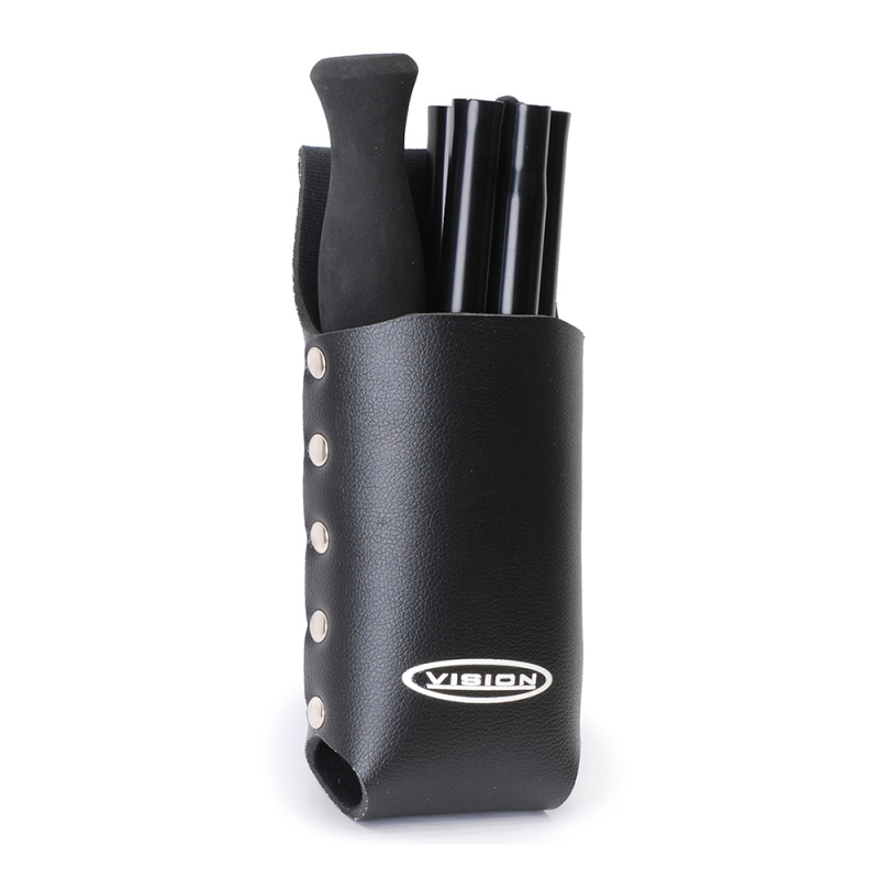 Er richtet sich automatisch auf, wenn er aus seiner Halterung genommen wird. Er hat einen ergonomisch geformten EVA-Griff und ein doppeltes elastisches Band für einen guten Halt bei Nässe und Trockenheit. Dieser Griff ist auch viel haltbarer als traditionelle Korkgriffe. Gesamtlänge als offen 59” und geschlossen 10”.