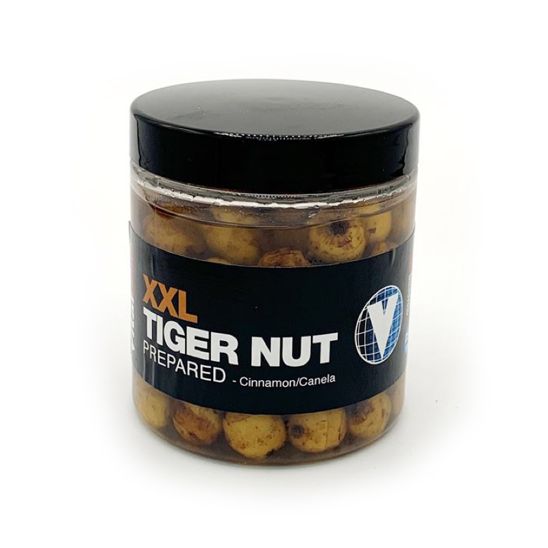 Ready made prepared XXL tigernuts for use as hookbait, in a liquid of sweetner and cinnamon flavour.