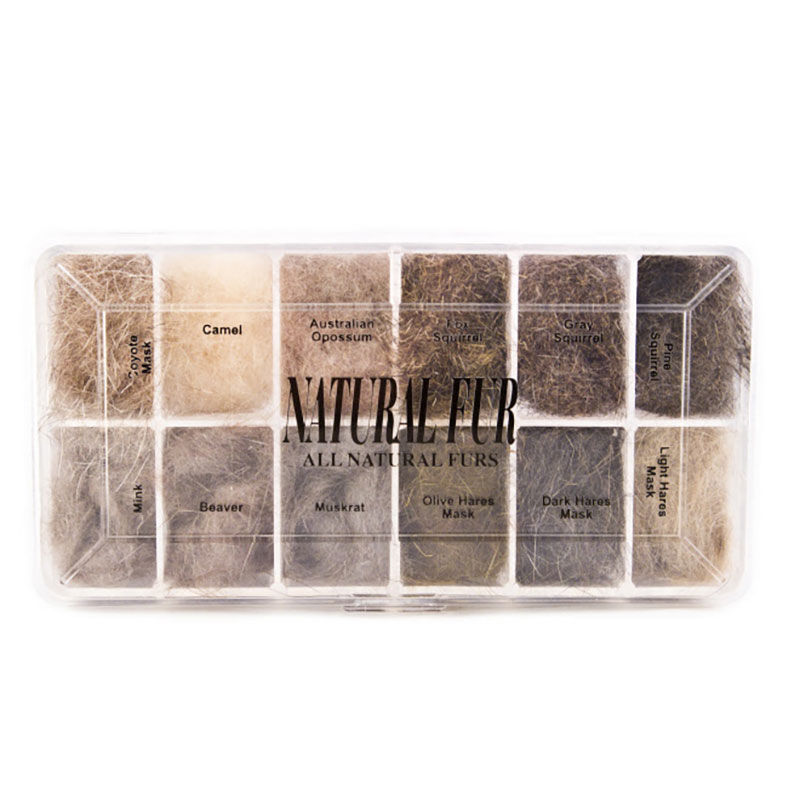 Natural Fur Dubbing Dispenser, eine super Kombination aus 12 Naturfellen, die jeder Fliegenbinder haben sollte.
