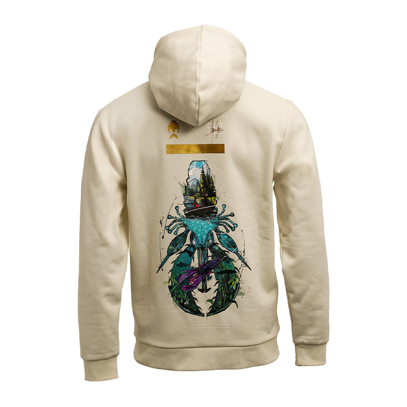 Der 320 GSM Stoff liegt angenehm schwer auf der Haut und hält auch bei kühleren Sessions warm. Die angeraute Innenseite sorgt für ein weiches Tragegefühl, während die verstellbare Kapuze und die Kängurutasche praktische Details für windige Ufer und lange Autofahrten bieten. Dank tagless Neckprint kratzt kein Etikett im Nacken – einfach anziehen und wohlfühlen.