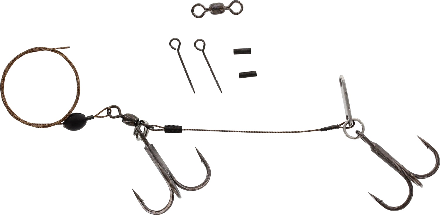 Das Westin Inline Rig ist ein starkes und zuverlässiges Stinger-Rig, das speziell für den Einsatz mit dem Westin HypoTeez Inline und anderen Inline-Hechtködern entwickelt wurde. Mit einer Zugkraft von 40,8kg und einer Länge von 40cm ist dieses Rig ideal für das Angeln auf große Hechte.