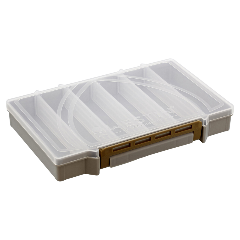 Westin W3 Tackle Box S5 25x16,5x3,6cm - Entdecken Sie unsere geräumige Angelkiste aus robustem PP-Material. Diese Box bietet reichlich Stauraum für Ihre Angelutensilien. Der hochwertige Deckel ist zwar nicht vollständig transparent, hat aber eine leicht milchige Oberfläche, die ein Gleichgewicht zwischen Sichtbarkeit und Schutz bietet. Mit fünf vielseitigen Fächern können Sie Ihre Köder, Angelgeräte und vieles mehr effizient organisieren. Machen Sie sich bereit für Ihr nächstes Angelabenteuer!
