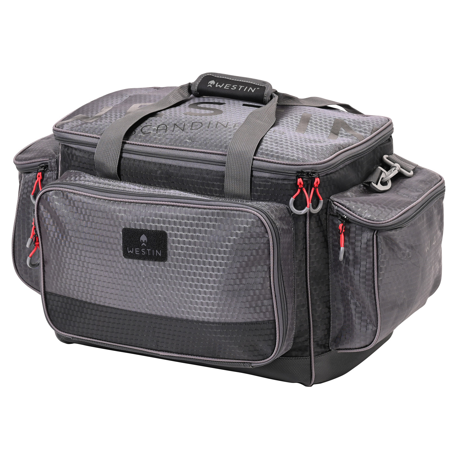 Die W4 Accessory Bag wurde für Angler entwickelt, die viel Stauraum benötigen. Die große Fronttasche mit Netzinnenfach sowie zwei Seitentaschen – eine davon mit elastischem Werkzeugorganizer – bieten viel Platz. Der verstellbare Innenraum, die verstärkte und wasserdichte Unterseite sowie der gepolsterte Tragegriff und Schultergurt machen sie besonders praktisch und robust.