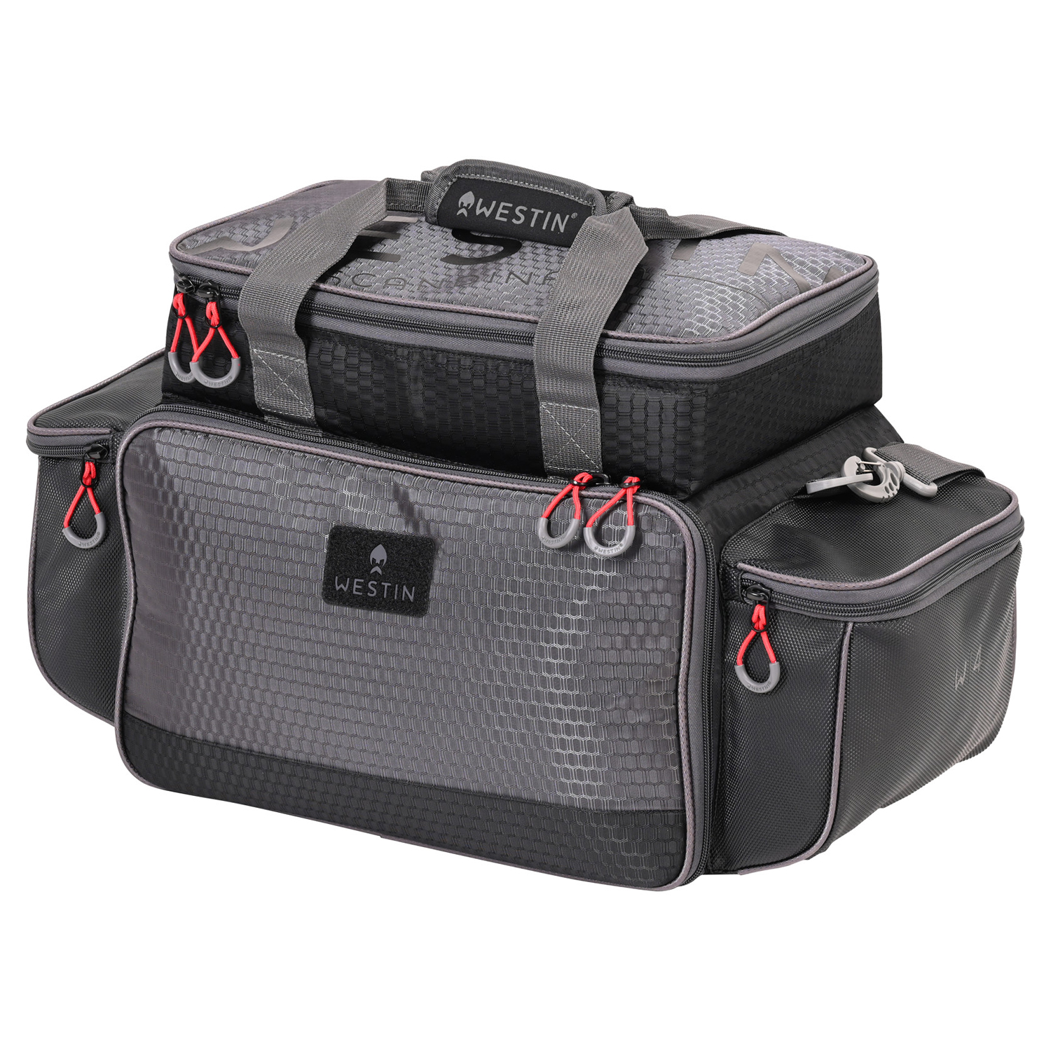 Die W4 P&T Master Bag kombiniert Funktionalität und Langlebigkeit. Mit wasserdichten Materialien, einem gepolsterten Griff und einem abnehmbaren Schultergurt ist sie perfekt für jedes Angelabenteuer. Das Hauptfach enthält fünf hochwertige Westin Tackle-Boxen, während die großzügigen Seitentaschen zusätzlichen Stauraum für Zubehör bieten. Das verstärkte, wasserdichte Bodenmaterial sorgt für maximale Strapazierfähigkeit.