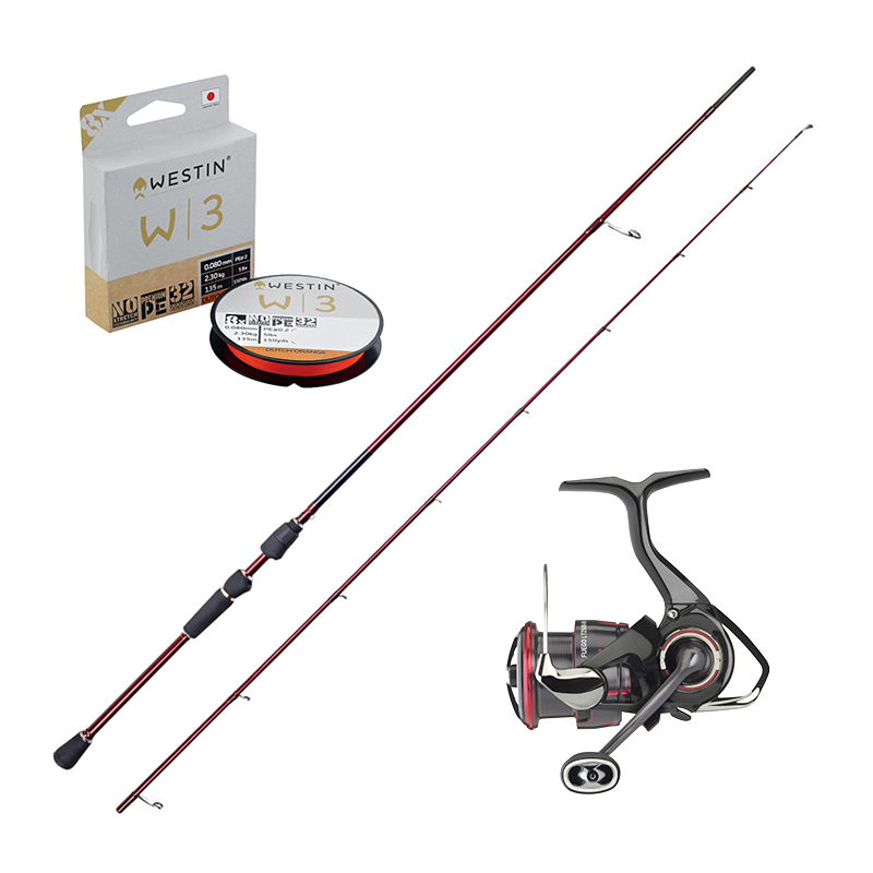 Mit der Westin W6 Finesse TC in Kombination mit der Daiwa 23' Fuego LT Rolle können Sie Ihr Finesse-Fischen aufwerten. Diese Premium-Kombination bietet eine ausgewogene Mischung aus Sensibilität und Kraft und ist damit perfekt für die Barschjagd geeignet. Die Westin W6 Finesse TC ist eine leichte Rute mit einer schnell reagierenden Spitze, die sich hervorragend zum Jiggen und für Texas & Carolina Rigs eignet. Die Daiwa Fuego LT-Rolle ist mit dem innovativen Airdrive-Design ausgestattet, das für eine höhere Festigkeit und Empfindlichkeit sorgt, sowie mit der Magsealed-Technologie, die eine lange Haltbarkeit gegen Verunreinigungen gewährleistet. Die Westin W3 8-Braid Dutch Orange Schnur vervollständigt dieses Set und bietet hervorragende Kontrolle, Haltbarkeit und Sichtbarkeit bei allen Angelbedingungen.