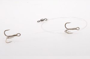 Ein schönes Rig für Ihren Köderfisch. Da Fluorocarbon anstelle von Stahl verwendet wird, wird dieses Rig unter Wasser weitgehend unsichtbar.