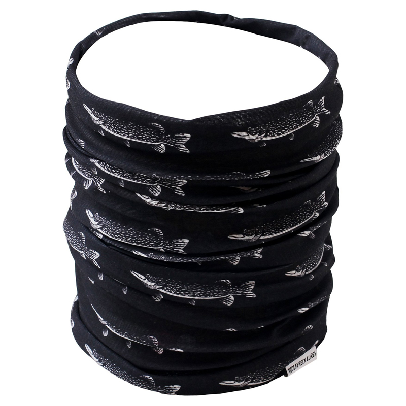 Wolfcreek Pike Logo Multiscarf, Black is a versatile multiscarf with pike motive. A must for every fisherman in general and pike fishermen specifically!