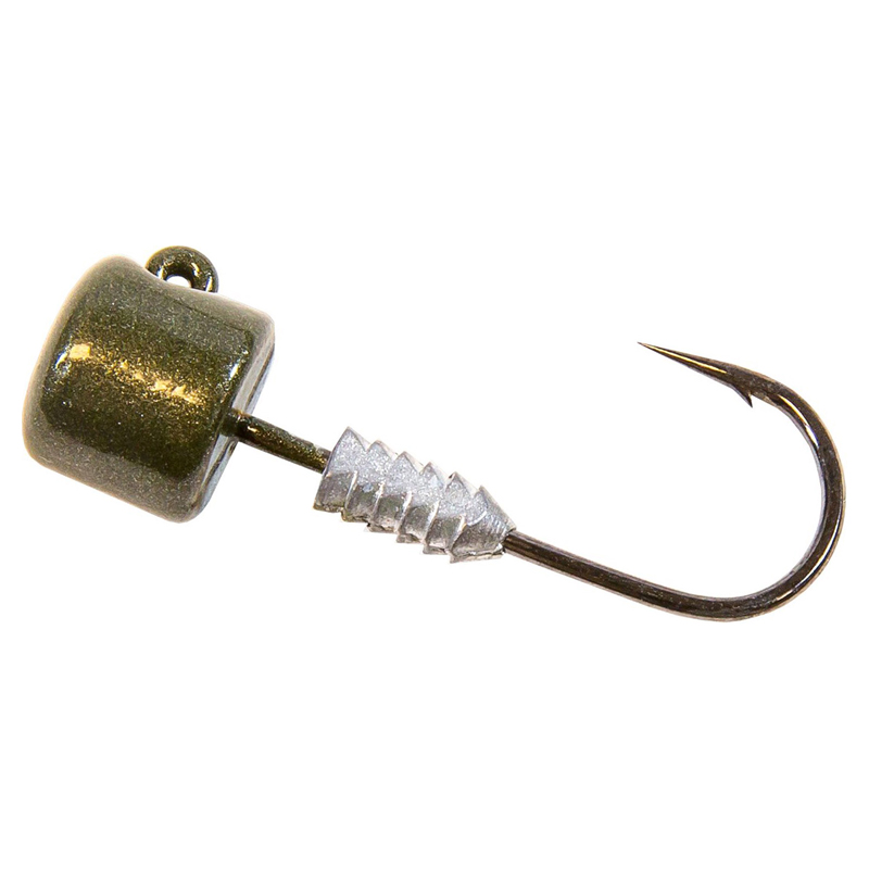 FEATURES • Charakteristischer pilzförmiger Kopf, der von Finesse-Enthusiasten bevorzugt wird • Heavy-duty Mustad® UltraPoint® Haken • Split keeper design ist einfach zu montieren und hält ElaZtech® und konventionelle weiche Kunststoffe sicher • Erhältlich in 1/15, 1/10, 1/6, und 1/5 Unze Gewichte in grünem Kürbis und schwarzen Oberflächen • 5 Jigköpfe pro Packung