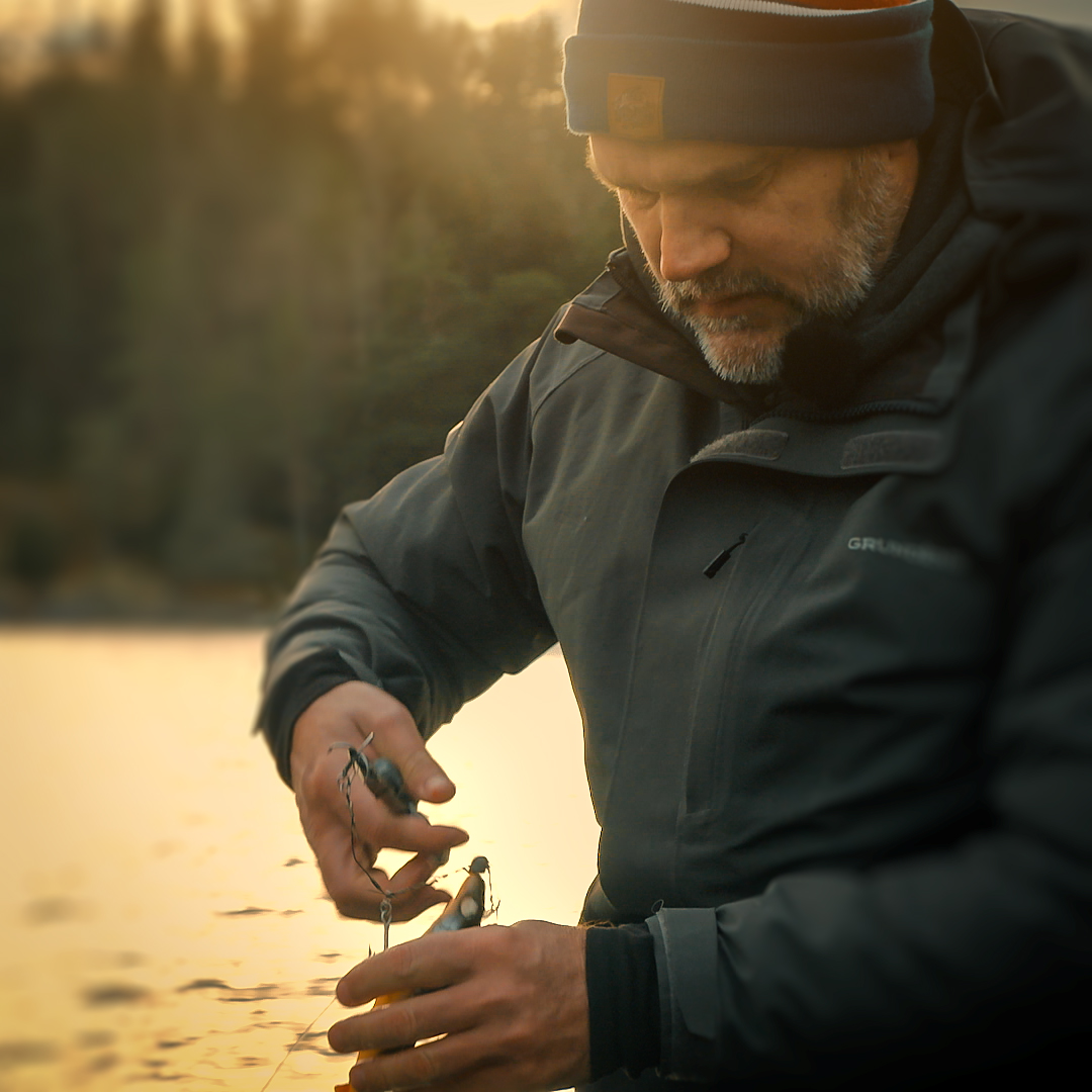 Henkes Tipp: In meinen Boxen gibt es fast nur 10/0 und 8/0 Jigköpfe. Das Wichtigste ist meiner Meinung nach, dass zwischen der Hakenspitze und dem Gummiköder genügend Platz ist, damit man gut den haken setzen kann. Wenn man zum Beispiel einen SöderJiggen mit einem Jigkopf schräg nach oben montiert, erzielt man oft gute Ergebnisse. Ich halte es nicht für notwendig, den Scout Shad XL mit einem 12/0er zu versehen, da ein so großer Haken unnötig grob ist. In den meisten Fällen ist das Wichtigste der Hakenspalt und nicht, wie weit hinten der Haken sitzt!